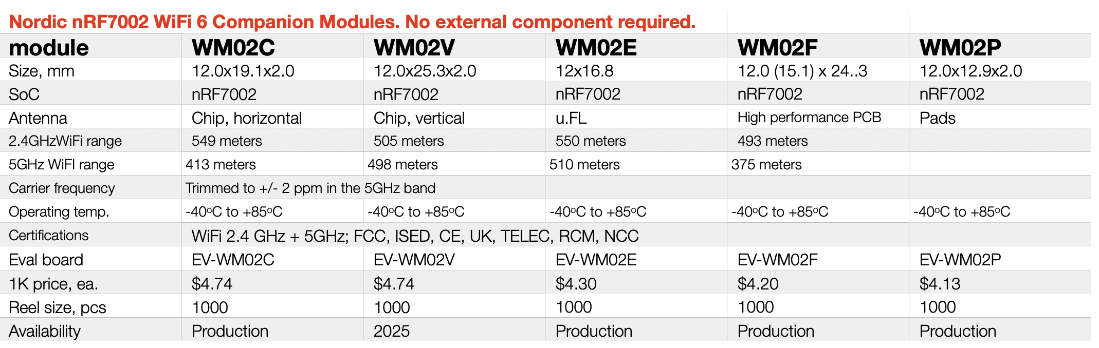 WM02P, WM02E, WM02C, WM02V, WM02F, WM02V Nordic nRF7002 WiFi 6 Module